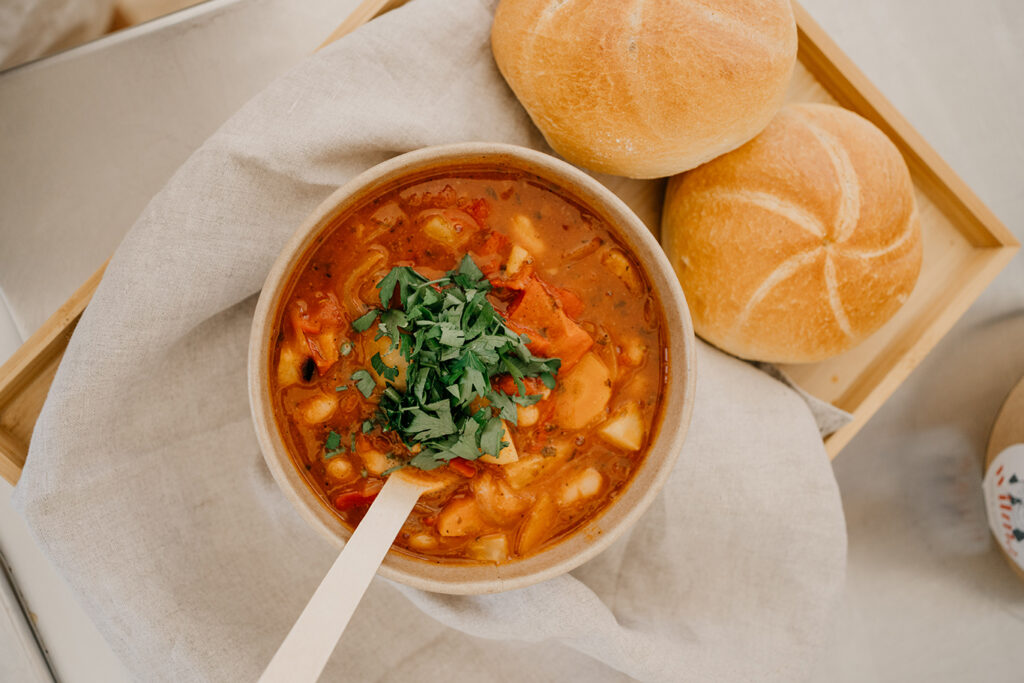 Bringt eine große Portion Gemütlichkeit an den Tisch: Dieser Bohneneintopf macht euch nicht nur satt und glücklich, sondern ist auch rasch und vor allem unkompliziert zuzubereiten. Denn er kann je nach Vorrat und Resten im Kühlschrank einfach abgewandelt werden. Dazu passt am besten ein Handsemmerl vom Bäcker oder eine dicke Scheibe Sauerteigbrot!